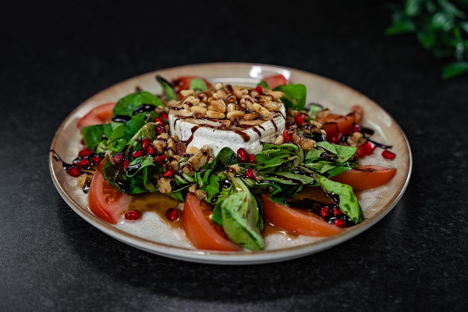 salad yang disajikan dengan indah dan cermat, menyoroti daya tarik abadi dari keju lunak premium dalam